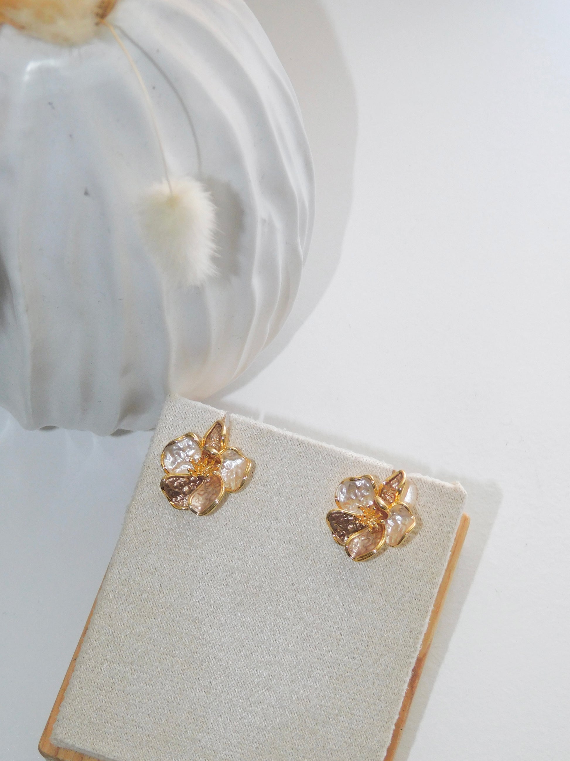 Delicate and radiant — the Golden Bloom Studs bring a touch of elegance to every moment. Crafted with gold-plated petals and an S925 sterling silver post for comfort, these earrings shimmer softly with every turn, adding a refined glow to your look.